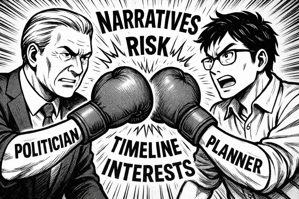 Urban planning is often described as a technical discipline, a creative endeavour, and a guardian of long-term societal interests. Yet decisions about cities ultimately rest in the hands of politicians—people who operate under fundamentally different incentives, time horizons, and pressures. The result is a persistent tension: planners propose well-reasoned solutions, yet political decision makers are […]